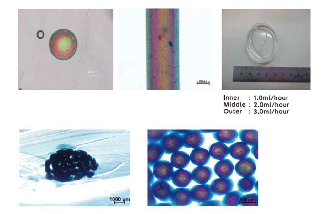 芯側(bore):非ゲル化溶液 アルギン酸プロピレングリコール(PGA)+スクロース
