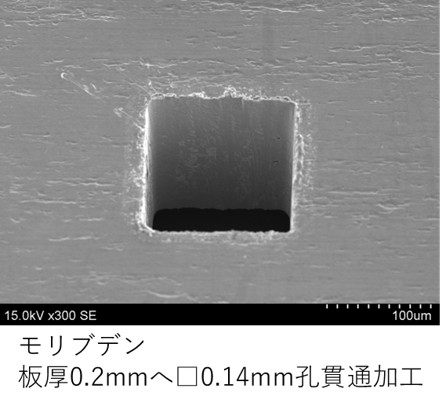 ステンレス(SUS)、チタン(Ti)、モリブデン(Mo)、タンタル(Ta)などの金属材料に加え、アルミナ(Al₂O₃)やシリコン(Si)といったセラミックス材料の加工実績もあります。