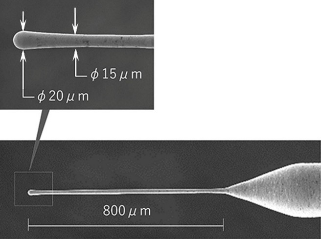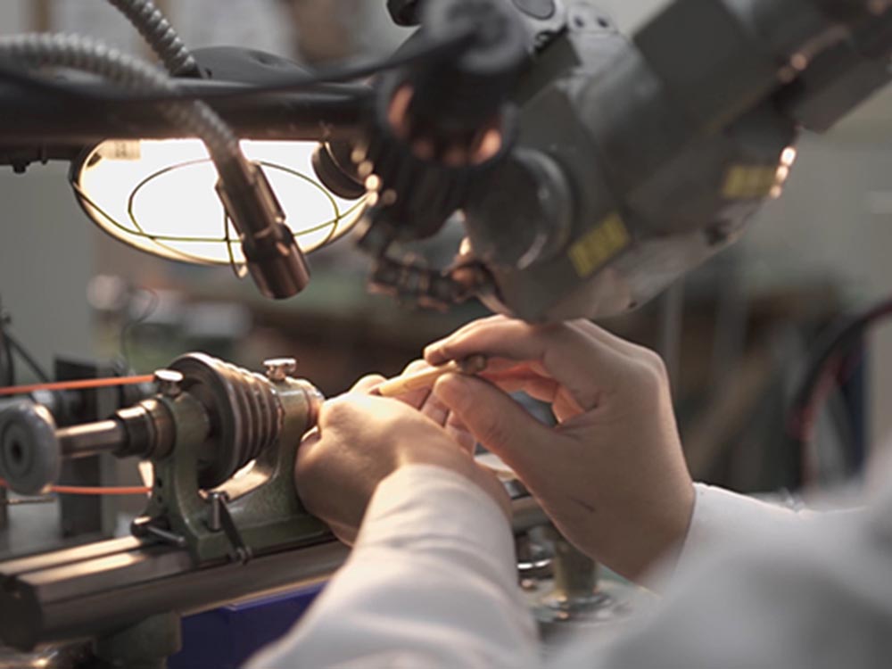 自社製作した機械工具により、10㎛以下の孔も高精度に加工します。